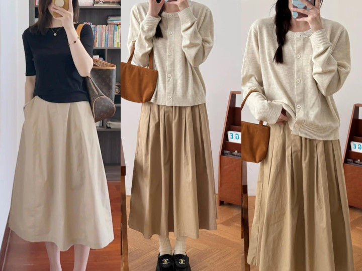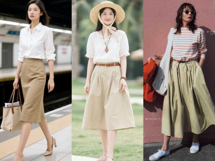 【一】卡其色半裙的4种搭配思路