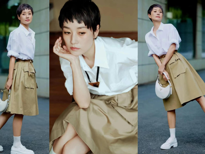 比如,穿上合体款白色poI0衫,让领子呈现出v字形状,突出修长的脖子线条。衣摆扎进卡其色半裙裙腰中,展现出高腰线,白色玛丽珍鞋与上衣形成呼应,打造出优雅时髦的学院风造型。